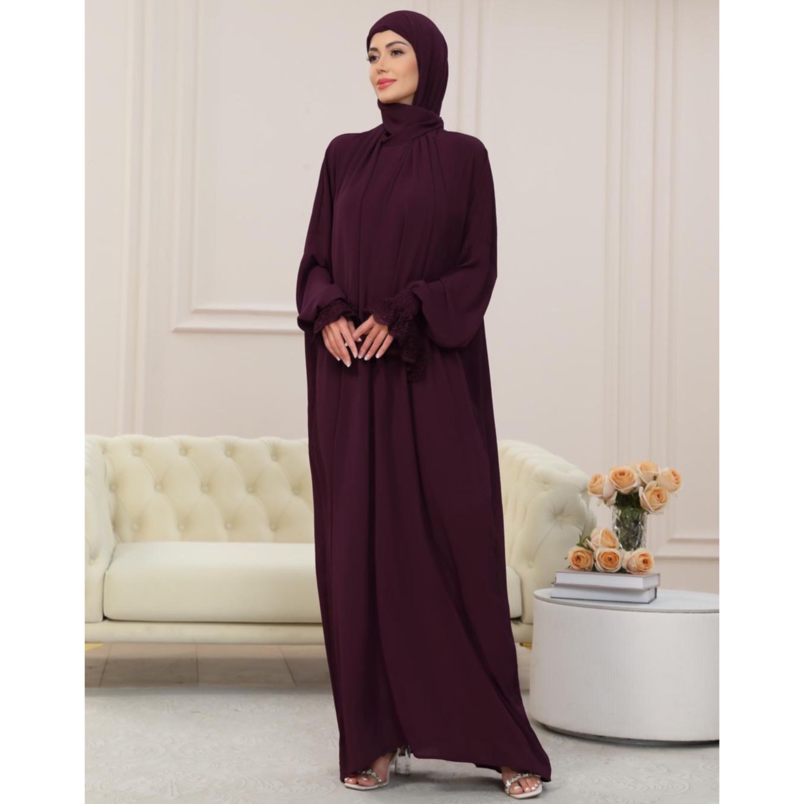 Our dresses offer a loose, flowing silhouette to ensure full coverage, while delicate lace accents on the sleeve cuffs and hijab edges add a touch of sophistication. Made from high-quality, lightweight polyester, this dress is breathable, wrinkle-resistant, and soft on the skin, offering all-day comfort for prayers and gatherings. Available in 10 stunning colours, from neutral tones to vibrant shades, this versatile and stylish prayer dress is perfect for daily wear, mosque visits, and religious occasions.